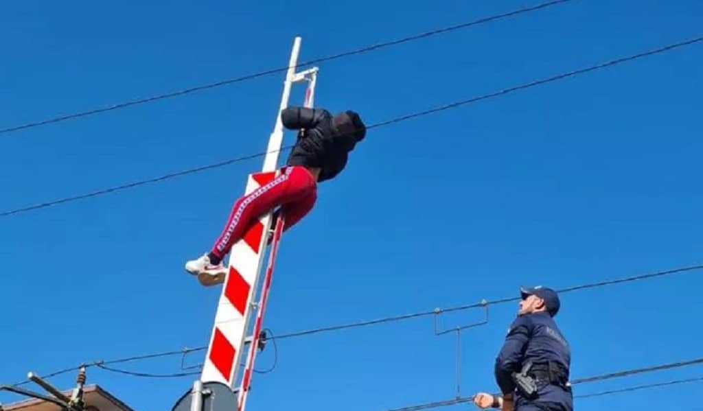 Sta di fatto che i soccorritori si sono trovati davanti al ragazzo sulla sbarra a qualche metro di altezza sopra la sede stradale. Sul posto sono intervenuti gli agenti della polizia locale.